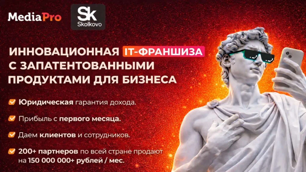 МЕДИАПРОСтоимость800 000 ₽Инвестиции30 000 ₽Окупаемость4 мес.Доход1 000 000 ₽Франшиза для быстрого старта в digital-маркетинге. MediaPro — IT-лидер в лидогенерации с 10+ запатентованными продуктами, помогающий бизнесам привлекать клиентов через цифровые каналы. Партнёры зарабатывают до 1 000 000 рублей в месяц с маржой 50%. За 14 дней вы запустите бизнес с юридической гарантией дохода и прибылью с 1-го месяца. Нам доверились 30 000 компаний, а 200+ партнёров убедились в эффективности бизнес-модели. Получите бесплатный тест-драйв и попробуйте себя в роли владельца IT-компании!