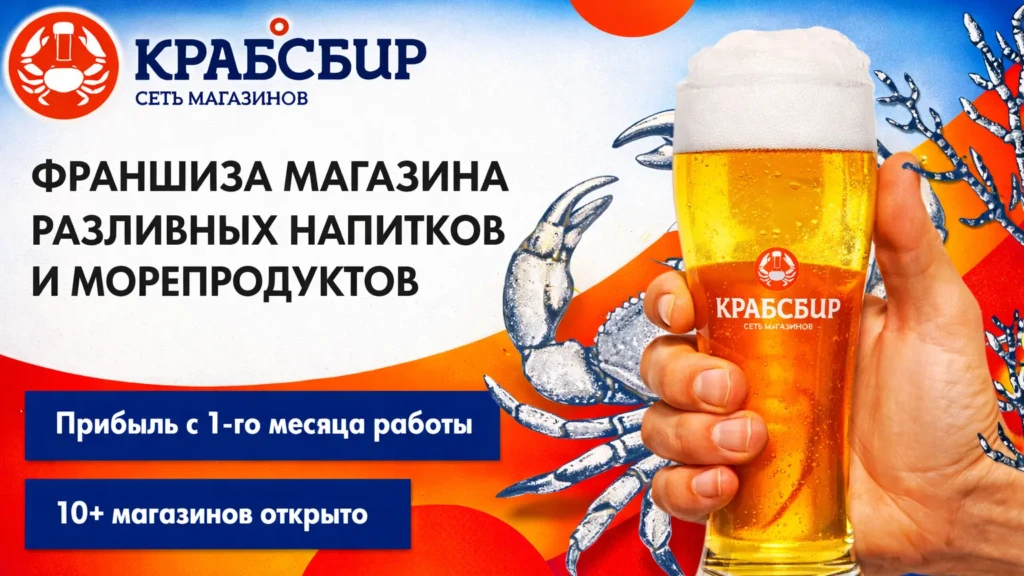 КРАБСБИРСтоимость590 000 ₽Инвестиции2 000 000 ₽Окупаемость6 мес.Доход440 000 ₽Магазины крафтового пива и морепродуктов открыты по всей России, мы предлагаем вам начать свой бизнес с нами и зарабатывать от 440 000 рублей в месяц. Мы поможем вам запустить бизнес за 52 дня. От нас вы получите полный пакет поддержки - помощь с поиском локации, дизайн, контакты поставщиков, маркетинг, обучение, CRM-систему и пошаговые инструкции. Рынок ценителей качественных продуктов и напитков постоянно растёт, и вы можете стать частью этого роста.