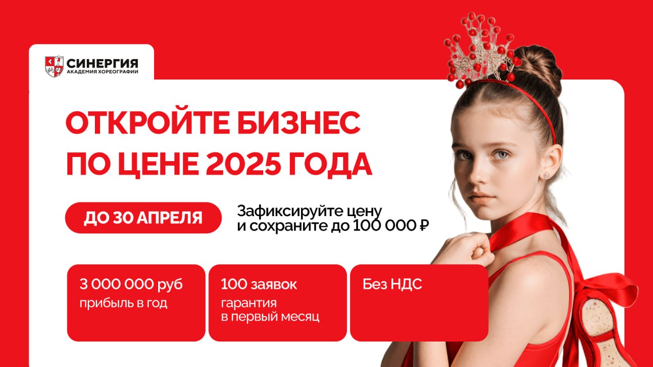 Академия хореографии «Синергия»История успехаЕвгения КладькоМосква1 500 000 рублей за 2 месяца c франшизой Академии хореографии «Синергия»-
