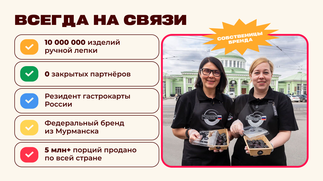 ЧебурекМиСтоимость500 000 ₽Инвестиции700 000 ₽Окупаемость6 мес.Доход700 000 ₽370+ точек ЧебурекМи в 6 странах — стрит-фуд франшиза, где 40% партнёров масштабируются и открывают 2–14 точек. Ежемесячный доход достигает 700 000 рублей в месяц даже с 1 точки. Бизнес-модель работает в городах от 2 500 человек — заходит там, где другие франшизы не окупаются. Формат с постоянным спросом: быстрый чек, понятный продукт, регулярные покупки. Успейте зайти в растущий рынок с уникальным продуктом! Оставляй заявку👇