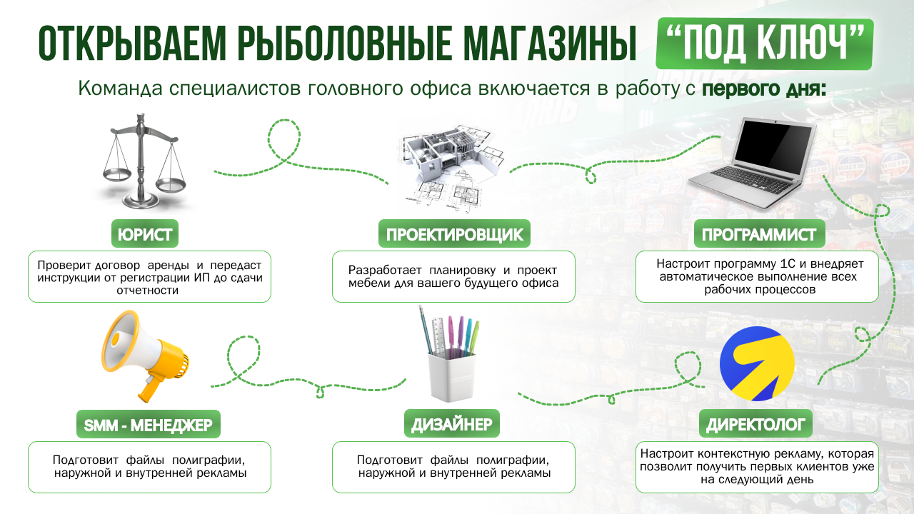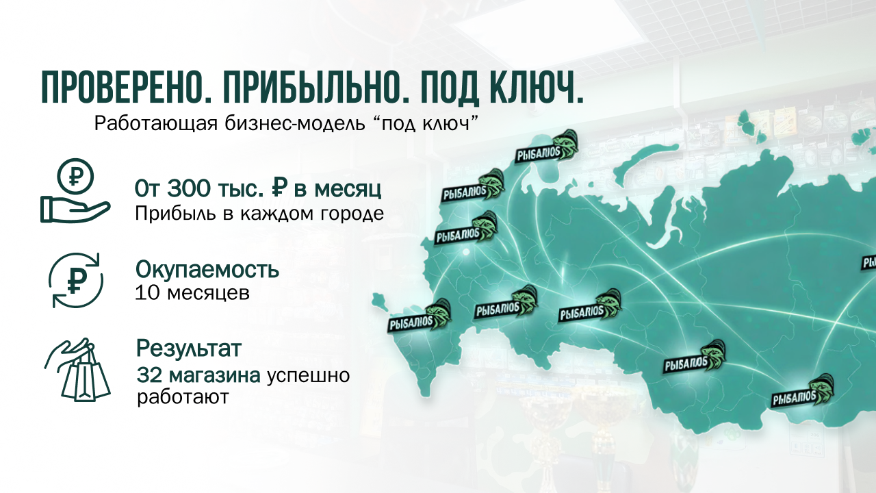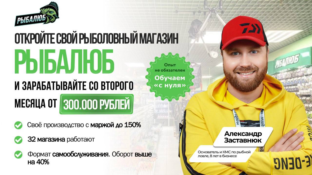 Франшиза премиального магазина рыбы и морепродуктов. Вы входите в растущий рынок (+12% в год) с готовой и управляемой моделью. Партнёры зарабатывают от 300 000 рублей чистой прибыли в месяц при марже до 35%. С 2021 года уже открыто 120+ магазинов в 80 городах России! 50% ассортимента — эксклюзив собственного производства, доступный только франчайзи. Мы обеспечим вас поставками, обучением и юрподдержкой. Получите презентацию со всеми расчётами и постройте свой доходный бизнес с качественным продуктом и опытной командой.