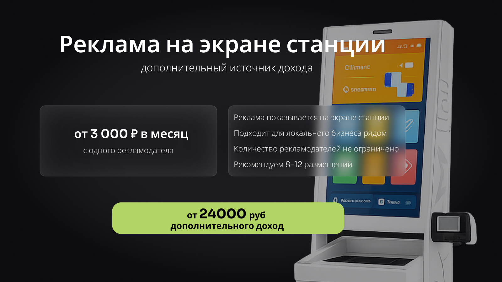 Станция ПРОСТОСтоимость240 000 ₽Инвестиции90 000 ₽Окупаемость3 мес.Доход100 000 ₽Станция проСТО — бизнес на автотоварах без персонала. Доход с первых месяцев! Готовый каталог из 100+ ходовых автотоваров, автоматические продажи 24/7 с контролем в телефоне. Мы запускаем под ключ:локация, юр. оформление, закупки, обучение и сопровождение. Без роялти. Гарантия продаж и окупаемости — по договору. Занятость — до 3 часов в неделю.