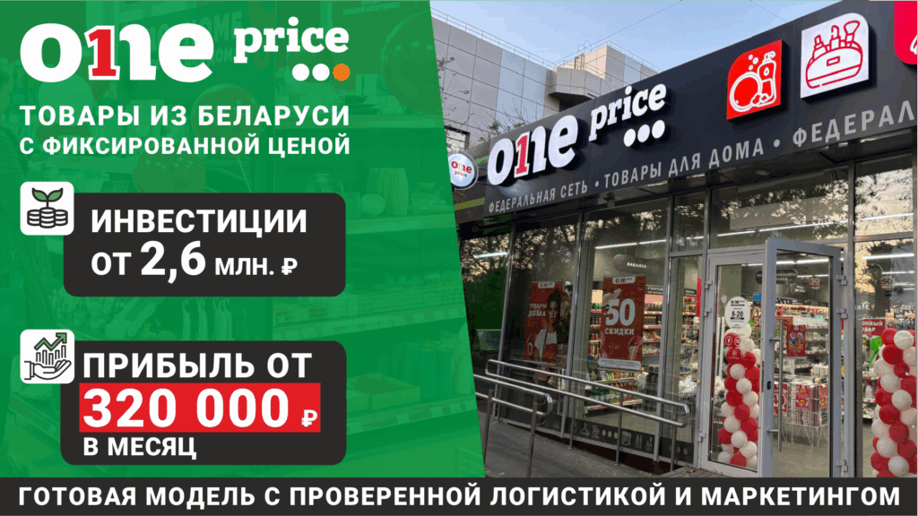 One PriceСтоимость690 000 ₽Инвестиции2 600 000 ₽Окупаемость12 мес.Доход320 000 ₽Франшиза One Price — бизнес с предсказуемым доходом. 350+ магазинов сети, стабильный спрос и фиксированные цены. С нами вы получите уникальные товары, которых нет на полках федеральных сетей и витрине маркетплейсов. А также индивидуальные скидки от поставщиков, обучение в Академии для франчайзи, запуск за 21 день! Мы работаем по проверенной белорусской модели бренда: высокий спрос, быстрая окупаемость, стабильный доход на растущем рынке доступного ритейла. Минимум рисков — максимум поддержки! Показать больше