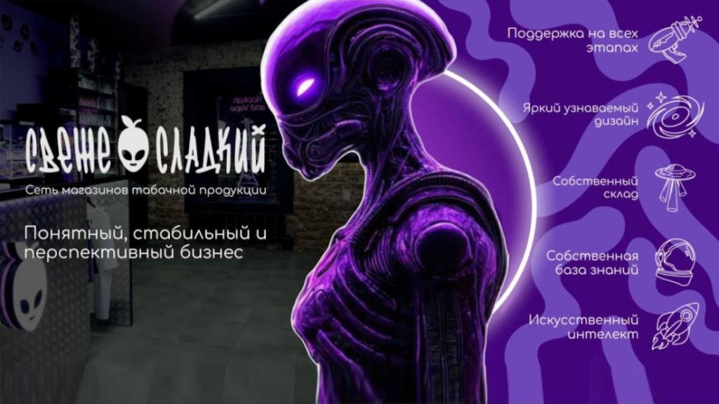 Свеже СладкийСтоимость290 000 ₽Инвестиции1 000 000 ₽Окупаемость10 мес.Доход320 000 ₽С 2021 года в Казани успешно развивается сеть стильных табачных магазинов. За 4 года создана технологичная и законная бизнес-модель, приносящая от 320 000 рублей ежемесячно. Полное обучение и поддержка помогают избежать ошибок и быстро выйти на прибыль. К 2027 году популярность табачных изделий вырастет на 8% благодаря инновационным продуктам. Эта ниша позволяет построить стабильный бизнес с высоким доходом. Хотите узнать, как открыть свой магазин? Запрашивайте презентацию! Показать больше