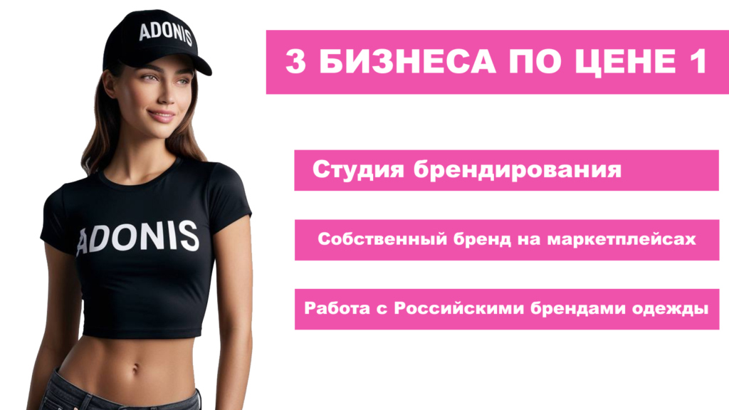 AdonisСтоимость200 000 ₽Инвестиции300 000 ₽Окупаемость3 мес.Доход300 000 ₽Франшиза Adonis позволяет открыть бизнес по производству брендированной продукции: работать с оптом, розницей и маркетплейсами. Гарантируем первые заказы за 14 дней по уникальной системе! Вы получаете всё необходимое для старта: оборудование, обучение, настройку рекламы и помощь в продажах. Средняя прибыль в первый месяц 100 000 рублей. Далее 300к и больше. Бизнес подойдет тем, кто хочет начать свое дело без рисков и сложностей, используя готовую систему. Окупаемость инвестиций 3-4 месяца, а работа не требует специальных навыков — все процессы поможет настроить наша опытная команда. Показать больше