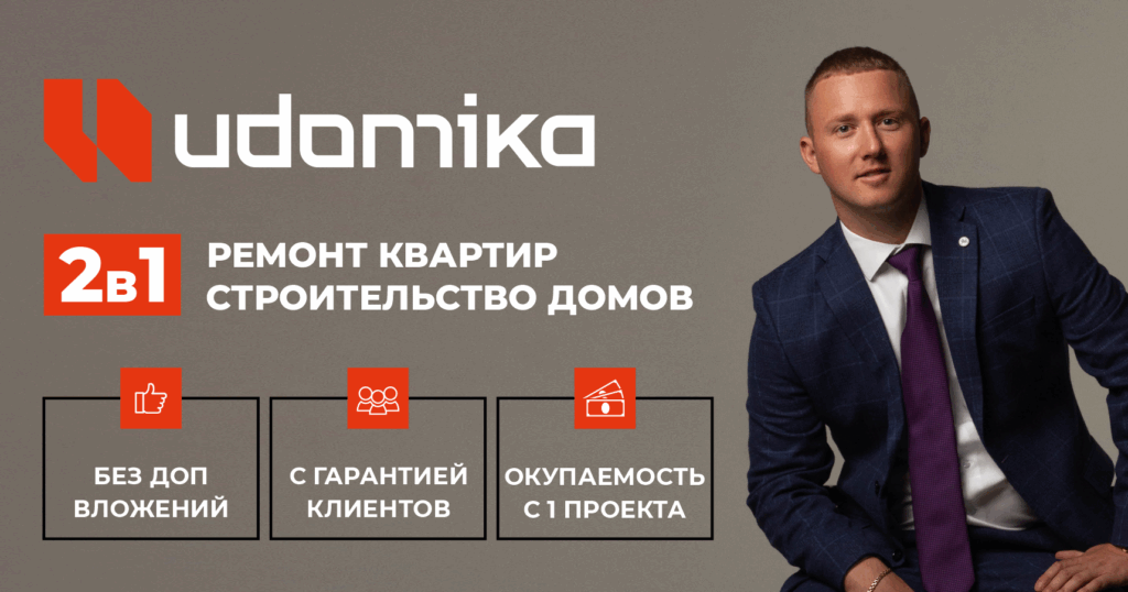 UDOMIKAСтоимость350 000 ₽Инвестиции300 000 ₽Окупаемость1 мес.Доход750 000 ₽UDOMIKA — франшиза, которая окупается уже на первом объекте. Компания 13 лет в ремонте и строительстве. Первый ваш объект сопроводит эксперт-наставник от управляющей компании. Обучим общаться с клиентами и закрывать на сделку. Партнёры из Москвы гарантированно получат клиентов по договору от УК. Инвестиции требуются только на оплату паушального взноса, офис и инструменты не обязательны: 70% работ выполняют субподрядчики. Вы просто управляете процессом и зарабатываете. Показать больше