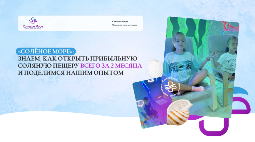 Соленое МореСтоимость250 000 ₽Инвестиции1 230 000 ₽Окупаемость13 мес.Доход150 000 ₽«Соленое море» — ваш личный санаторий прямо в городе. Соляная пещера, где 1 час сеанса по эффекту напоминает 2 дня отдыха у моря. Исследования показывают, что галотерапия улучшает дыхание, снижает воспаление и укрепляет иммунитет. Мы создали безопасное и полезное пространство для всей семьи: от 1 года до 70+, где гости получают расслабление, поддержку иммунитета и улучшение сна. С нашей франшизой вы сможете открыть готовый бизнес с поддержкой: стандарты, обучение персонала, маркетинг. Показать больше